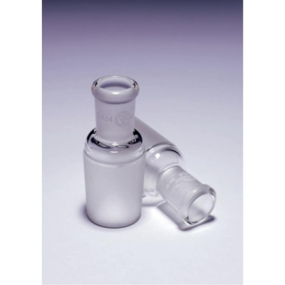 Reduction adapters are used in the same way as an expansion adapter, to connect two items of glassware with different joint sizes. These adapters connect items with a smaller cone to a piece of glassware with a larger size socket.