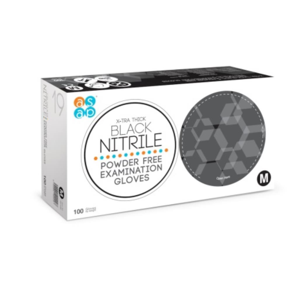 ASAP Black X-Tra Thick Powder Free Nitrile Gloves Small