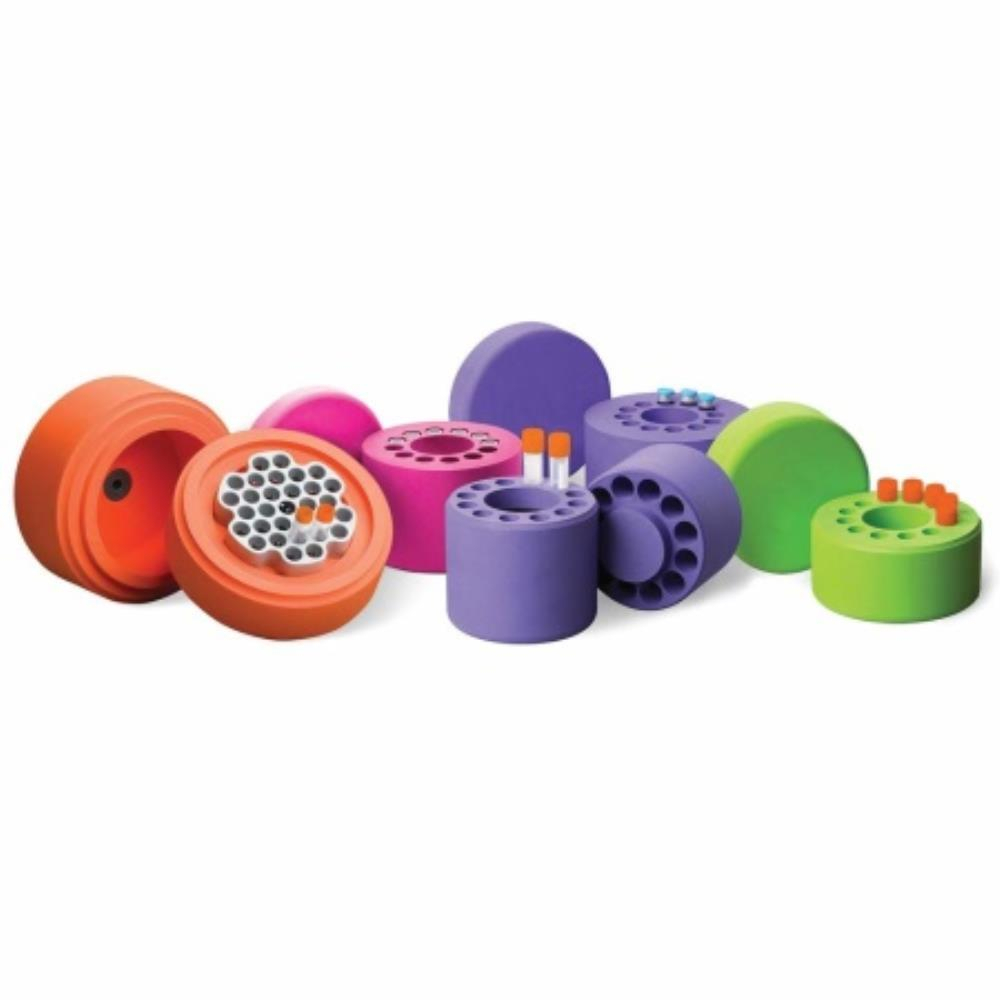 Corning® CoolCell®, in combination with a -80°C freezer, will provide alcohol-free freezing at the rate of -1°C/minute that is ideal for cryopreservation of most cells and cell lines. Using a combination of uniform-density cross-linked polyethylene foam, a solid state core, and radial vial symmetry, freezing profiles are consistent and reproducible. The foam is non-absorbent and will impose negligible change in the freezer environment; thereby protecting nearby frozen samples. The removal of vials is accomplished by tipping the device upside down so the vials slide out.
