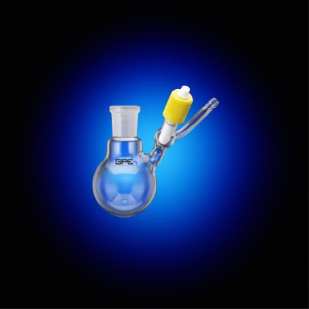 J Young Schlenk Flask Round Bottom 50mL With High Performance Fine Thread Tap And B19 Socket