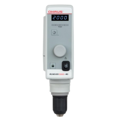 OHAUS Achiever™ 5000 overhead stirrers are designed for powerful, precise stirring, safety and simplicity in all applications. The sealed design has an IP54 rating and ensures safe mixing performance even in the most demanding applications. The keyless chuck and software-controlled speed ramping provide easy setup and safe stirring to protect the sample and user. Select from five models with up to 200Ncm torque and up to 100L volume capacity.